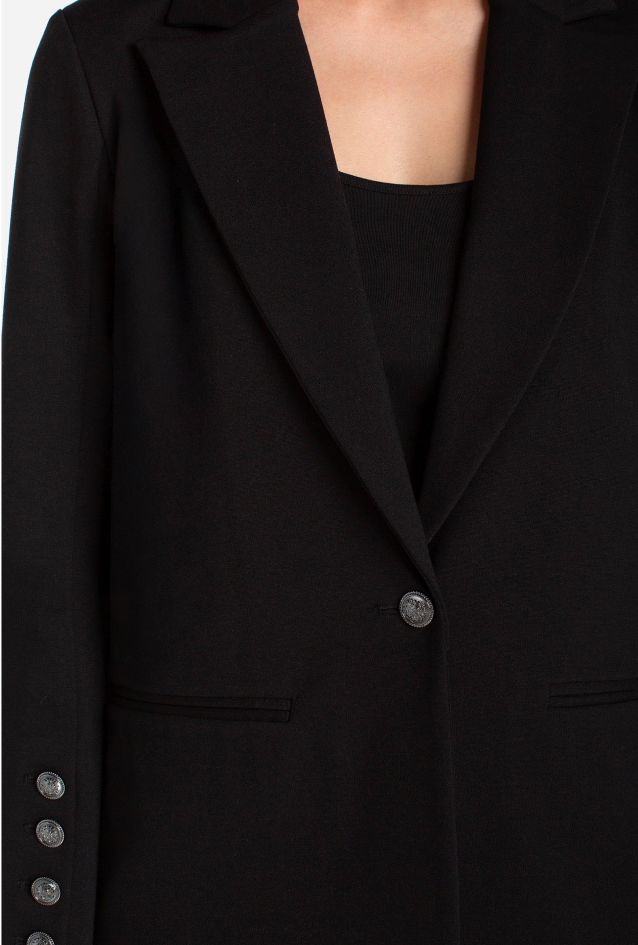 LoveThis black blazer with button sleeve offers a timeless design suitable for various professional settings. The classic style is versatile, allowing for easy integration into both formal and business-casual wardrobes. Its structure enhances the wearer's silhouette, promoting a polished appearance. Lm1c97m42