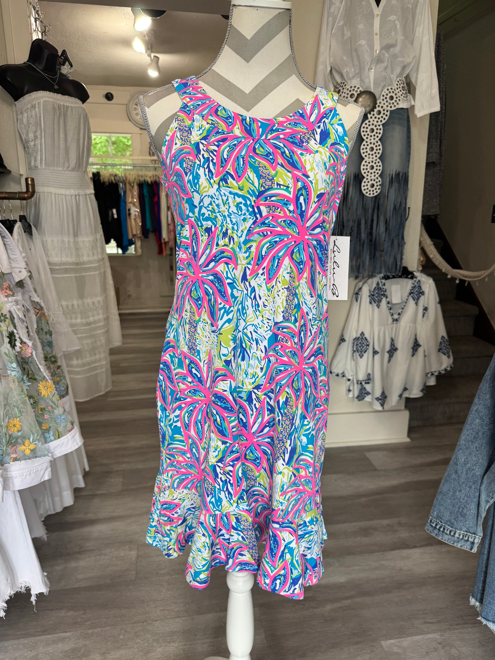 This expertly crafted LULU B RUFFLE DRESS features innovative cooling fabric technology with built-in SPF 50 protection. The specialized material effectively regulates body temperature while shielding your skin from harmful UV rays, making it an ideal choice for outdoor events or warm-weather occasions without compromising on style or comfort.